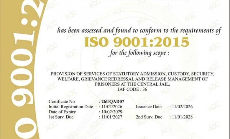 रायपुर, छत्तीसगढ़ की जेल व्यवस्थाओं में गुणवत्ता, पारदर्शिता और जवाबदेही को सुदृढ़ करने की दिशा में एक महत्वपूर्ण उपलब्धि हासिल हुई है। उप मुख्यमंत्री एवं जेल विभाग के प्रभारी मंत्री विजय शर्मा के निर्देशन में राज्य की जेलों की व्यवस्थाओं को बेहतर बनाने के लिए लगातार प्रयास किए जा रहे है। इन्हीं प्रयासों का ही यह परिणाम है कि छत्तीसगढ़ की सेंट्रल जेल रायपुर, दुर्ग, बिलासपुर एवं अम्बिकापुर को अंतरराष्ट्रीय गुणवत्ता मानक आईएसओ 9001ः2015 का प्रमाणन प्राप्त हुआ है।