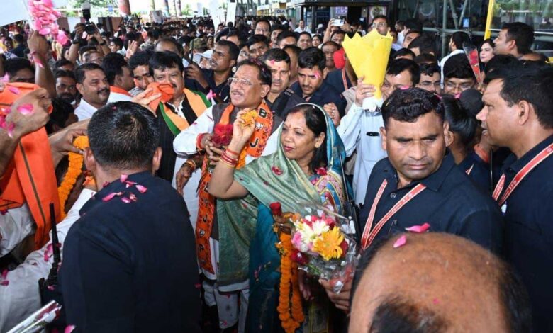 रायपुर, अपनी आठ दिन के जापान और दक्षिण कोरिया के विदेश दौरे के बाद आज मुख्यमंत्री श्री विष्णु देव साय वापस रायपुर लौटे हैं। श्री साय के वापस लौटने पर आज एयरपोर्ट पर उनका भव्य स्वागत किया गया। छत्तीसगढ़ के पारंपरिक कर्मा और पंथी नृत्यों से पूरा एयरपोर्ट परिसर लगभग एक घंटे तक सराबोर रहा। लोगों की बड़ी संख्या में मौजूदगी ने मुख्यमंत्री श्री साय की लोकप्रियता और उनके विदेश दौरे की सफलता को स्वयं ही बयां कर दिया। मुख्यमंत्री का पुष्प गुच्छों से लेकर गजमाला तक से स्वागत किया गया। एयरपोर्ट के निकास द्वार से मीडिया गैलेरी तक लगभग 100 मीटर की दूरी तय करने में श्री साय को लगभग 15 मिनट लगे। इस दौरान लोगों ने पुष्प वर्षा से भी श्री साय का स्वागत किया। बाद में मुख्यमंत्री ने उपस्थित जनसमुदाय को सम्बोधित किया और इस भव्य स्वागत के लिए सभी का आभार जताया। मुख्यमंत्री ने कहा कि जापान और दक्षिण कोरिया दोनों ही देशों में बड़ा भारतीय समुदाय बसा हुआ है और हमारे छत्तीसगढ़ के लोग भी वहां पर व्यापारिक कार्यों में लगे हुए हैं। उनसे मिलकर मुझे बहुत अच्छा महसूस हुआ और यह लगा ही नहीं कि हम परदेश में हैं। उन्होंने कहा कि हमारे उद्यमी, हमारे कारोबारी पूरी दुनिया में फैले हुए हैं और भारत भूमि का नाम हर तरफ रोशन कर रहे हैं।