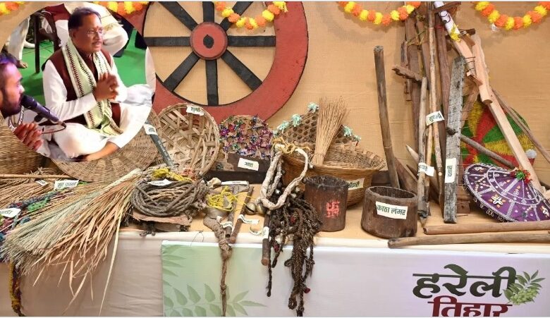 छत्तीसगढ़ी लोकजीवन की खुशबू लिये हरेली तिहार का पारंपरिक उत्सव आज मुख्यमंत्री विष्णुदेव साय के निवास में विधिवत रूप से आरंभ हुआ. छत्तीसगढ़ एक ऐसा प्रदेश है, जहां प्रत्येक अवसर और कार्य के लिए विशेष प्रकार के पारंपरिक उपकरणों एवं वस्तुओं का उपयोग होता आया है. हरेली पर्व के अवसर पर मुख्यमंत्री निवास कार्यालय में ऐसे ही पारंपरिक कृषि यंत्रों एवं परिधानों की झलक देखने को मिली, जो छत्तीसगढ़ की समृद्ध सांस्कृतिक विरासत की अमूल्य धरोहर हैं.
