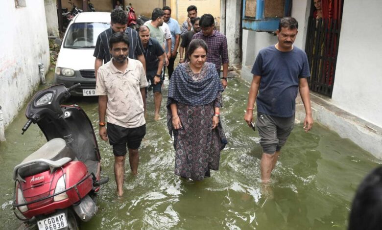 रायपुर. राजधानी में रातभर बारिश से प्रोफेसर कॉलोनी समेत निचली बस्तियों में जलभराव से परेशान लोगों ने आज सुबह नेशनल हाईवे पर चक्काजाम कर समस्या का स्थायी समाधान करने की मांग की. चक्काजाम के बाद रायपुर महापौर मीनल चौबे और आयुक्त विश्वदीप ने पार्षदों और जोन अधिकारियों के साथ जोन 5 और जोन 6 क्षेत्र में कुकरीपारा, प्रोफेसर कॉलोनी, परशुराम नगर सहित अन्य निचले क्षेत्रों में पहुंचकर जलभराव की समस्या का जायजा लिया.