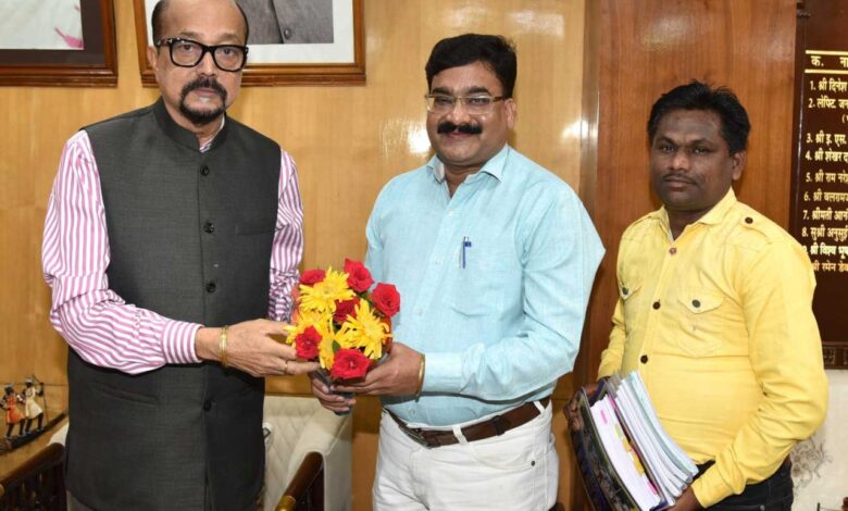 रायपुर, राज्यपाल श्री रमेन डेका से आज यहां राजभवन में तिफरा बिलासपुर के गेंडी लोक नृत्य कलाकार श्री अनिल कुमार गढ़ेवाल ने सौजन्य भेंट की।