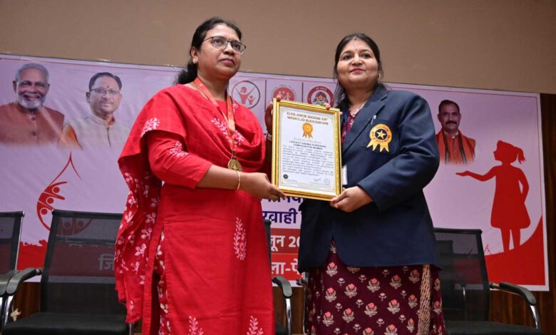 गौरेला पेंड्रा मरवाही, एनीमिया मुक्त भारत कार्यक्रम और बेटी बचाओ-बेटी पढ़ाओ कार्यक्रम को शामिल करते हुए कलेक्टर श्रीमती लीना कमलेश मंडावी के नेतृत्व में 26 जून को जिले में चलाए गए रक्त शक्ति महा अभियान में एक ही दिन में जिले की 13 से 45 वर्ष आयु वर्ग की 51727 महिलाओं का हीमोग्लोबीन (एचबी) जांच कराने पर जीपीएम जिला गोल्डन बुक ऑफ वर्ल्ड रिकार्ड में शामिल हो गया है। गोल्डन बुक ऑफ वर्ल्ड रिकार्ड की स्टेट हेड श्रीमती सोनल राजेश शर्मा ने आज एसेम्बली हॉल मल्टीपरपज स्कूल पेण्ड्रा में आयोजित प्रेस कॉन्फ्रेंस में इसकी घोषणा करते हुए कलेक्टर को प्रमाण पत्र प्रदान किया। गोल्डन बुक ऑफ वर्ल्ड रिकार्ड की स्टेट हेड श्रीमती सोनल राजेश शर्मा ने स्वस्थ समाज के निर्माण में इस उत्कृष्ट कार्य के लिए जिला प्रशासन को शुभकामनाएं दी।