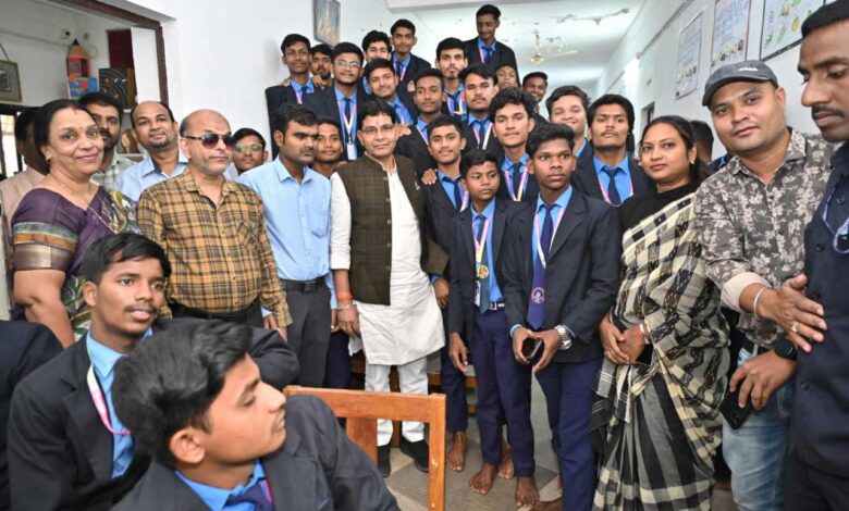 रायपुर । बाल दिवस पर शासकीय दृष्टि एवं श्रवण बाधितार्थ विद्यालय, मठपुरैना रायपुर का माहौल विशेष उत्साह से भर गया, जब राजस्व मंत्री टंक राम वर्मा बच्चों से मिलने पहुँचे। मंत्री वर्मा का बच्चों, शिक्षकों और प्राचार्य ए.के. त्रिवेदी ने उनका गर्मजोशी से स्वागत किया। कार्यक्रम की शुरुआत “भारत माता की जय” और “छत्तीसगढ़ महतारी की जय” के गगनभेदी नारों के साथ हुई।