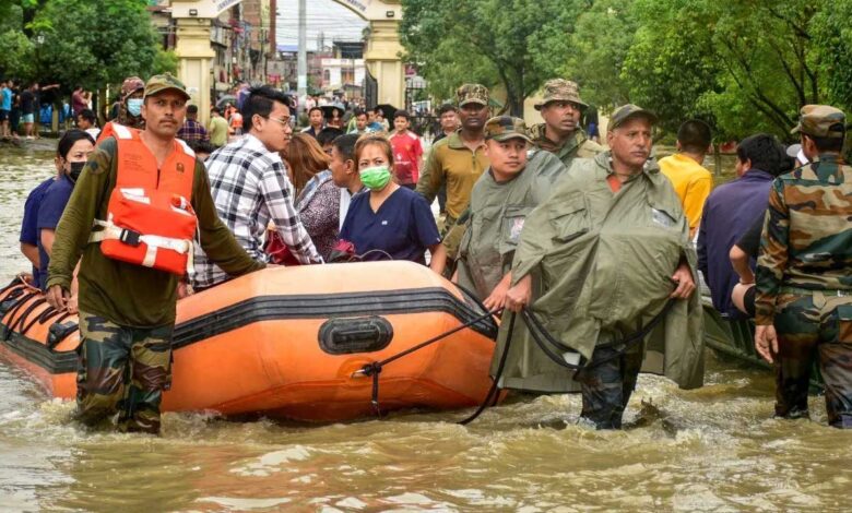 असम के कई राज्यों में बाढ़ के कारण हालात बेकाबू।