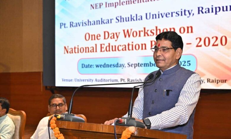 रायपुर, उच्च शिक्षा मंत्री टंक राम वर्मा ने नई शिक्षा नीति 2020 पर आजपं. रविशंकर शुक्ल विश्वविद्यालय, रायपुर में मालवीया मिशन टीचर ट्रेनिंग सेंटर एवं एनईपी इम्प्लीमेंटेशन सेल के संयुक्त तत्वावधान में राष्ट्रीय शिक्षा नीति-2020 पर एक दिवसीय कार्यशाला का आयोजन किया गया। विश्वविद्यालय सभागार में आयोजित इस कार्यशाला में उच्च शिक्षा मंत्री श्री टंक राम वर्मा ने कहा कि राष्ट्रीय शिक्षा नीति-2020 देश की शिक्षा व्यवस्था को नई दिशा और दृष्टि देने वाली है। यह नीति न केवल विद्यार्थियों के सर्वांगीण विकास पर बल देती है बल्कि इसमें कौशल विकास, रोजगारपरक शिक्षा और अनुसंधान को भी प्राथमिकता दी गई है। उन्होंने कहा कि नई शिक्षा नीति से उच्च शिक्षा संस्थानों को अकादमिक उत्कृष्टता प्राप्त करने का अवसर मिलेगा और युवाओं का भविष्य और भी उज्ज्वल होगा। सरकार निरंतर प्रयासरत है कि प्रदेश का प्रत्येक युवा गुणवत्तापूर्ण शिक्षा प्राप्त करे और अपनी प्रतिभा के बल पर समाज और राष्ट्र के विकास में योगदान दे।