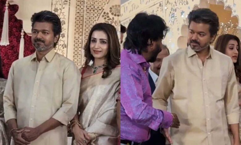 विजय और त्रिशा फिल्म प्रोड्यूसर कलापति एस सुरेश और मीनाक्षी सुरेश के बेटे की शादी में नजर आए जो चेन्नई में हुई थी गुरुवार को। दोनों साथ में वेन्यू पर पहुंचे और फिर कपल के साथ फोटोज भी क्लिक की। इतना ही नहीं दोनों फिर साथ में रिसेप्शन से बाहर जाते भी दिखे।